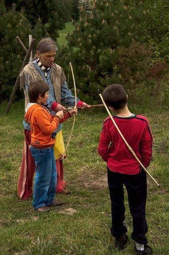Zapraszamy do odwiedzin Wioski indiańskiej w Łopuchówku koło Murowanej Gośliny w okolicach Poznania na terenie Parku Krajobrazowego "Puszcza Zielonka", gdzie prowadzimy zajęcia rekreacyjno-edukacyjne dla dzieci szkolnych i przedszkolnych. Jest to niezwykłe miejsce, którego główną część stanowi „Obozowisko Koczowników Wielkich Równin” – wystawa prezentująca ekspozycję przedmiotów związanych z codziennym życiem Indian Ameryki Północnej. Wśród malowanych tipi (namiotów indiańskich) - przenośnych domostw mieszkańców prerii, przedmiotów codziennego użytku, bogato zdobionych strojów i prymitywnej broni można odczuć magiczną atmosferę świata dawnych wojowników i łowców. W wiosce znajdują się również obiekty dające możliwość aktywnego wypoczynku, m.in. plac zabaw ze strzelnicami, gdzie każdy może sprawdzić swoje umiejętności w różnych formach „polowania” i tor przeszkód, na którym można się wykazać sprawnością i siłą fizyczną. Posiadamy także miejsce na ognisko znajdujące się w tio-tipi – wyjątkowo atrakcyjnym, ze względu na swoją wielkość, indiańskim namiocie (mieści się w nim nawet sto osób). W naszym sklepiku każdy może kupić pamiątkę, która będzie przypominać mu mile spędzony u nas czas. Zajęcia prowadzą wykwalifikowani instruktorzy – członkowie Polskiego Ruchu Przyjaciół Indian. W tym niezwykłym miejscu znajdziecie domostwa Indian Ameryki Północnej wraz z ich charakterystycznym wyposażeniem. Główną część wystawy stanowi "Obozowisko koczowników Wielkich Równin", gdzie wśród malowanych tipi, w otoczeniu misternie wykonanych przedmiotów, przebogato zdobionych strojów, egzotycznych sprzętów i prymitywnej broni, można na chwilę przenieść się w magiczny świat dawnych wojowników i łowców. Wyjątkową atrakcją jest tio-tipi (namiot indiański), w którym jednorazowo może zmieścić się kilkadziesiąt osób. W wiosce znajdują się również obiekty dające możliwość aktywnego wypoczynku i zdobycia pamiątki z pobytu. Położenie wioski w Parku Krajobrazowym Puszcza Zielonka, w pobliżu tras turystycznych i bezpośrednim sąsiedztwie plaży nad jeziorem Worowskim, stwarza możliwość aktywnego wypoczynku nie tylko dla dzieci. Z myślą o rodzinach lubiących spędzać czas na łonie natury, ciekawych wiedzy o innych kulturach i zainteresowanych poznawaniem innych sposobów spędzania wolnego czasu - w soboty i niedziele otwieramy nasze podwoje dla turystów indywidualnych. Każde dziecko i prawie każdy dorosły marzył kiedyś, aby postrzelać z łuku, rzucić włócznią czy spróbować swych sił w polowaniu z dmuchawki. Ile razy oglądając filmy o Indianach marzyliście o siedzeniu przy ognisku płonącym wewnątrz tipi ? Te i wiele różnych innych atrakcji jest dzisiaj w zasięgu ręki. Wystarczy przyjechać do Łopuchówka i odwiedzić naszą wioskę. Zapraszamy. Postaramy się pokazać Wam jak żyli Indianie w czasach znanych z książek i filmów, ale nie tylko, opowiemy również o ich współczesnym życiu.